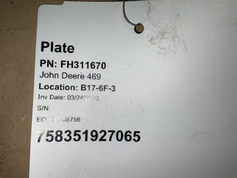 Plate, John Deere, Used