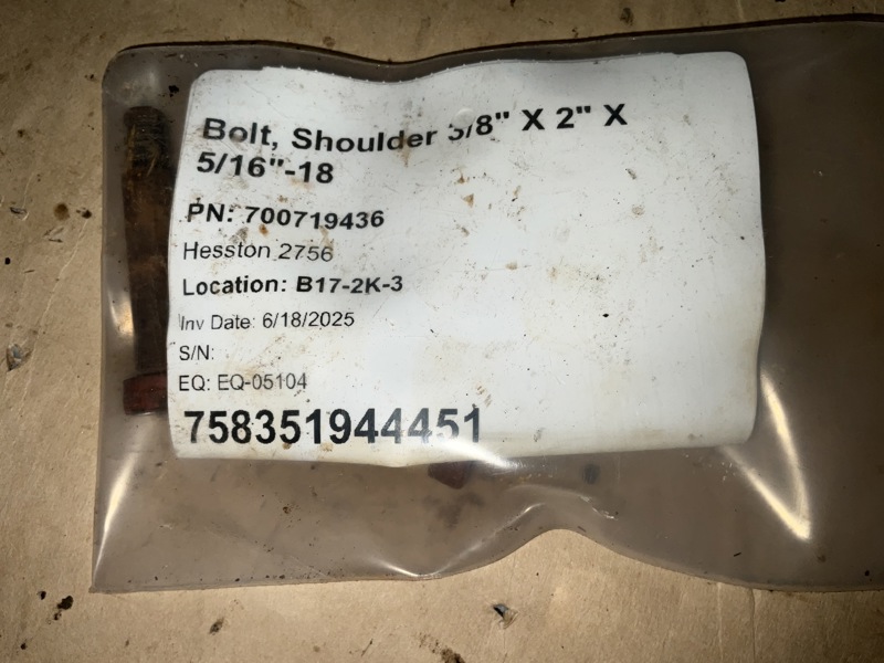 | Description | Bolt, Shoulder 3/8" X 2" X 5/16"-18 |